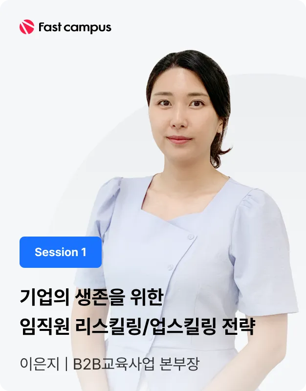 이은지 B2B교육사업 본부장, Fast campus14:40 ~ 15:10Session 1기업의 생존을 위한 임직원 리스킬링/업스킬링 전략