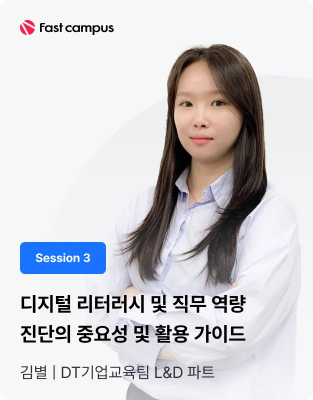 김별 매니저, DT기업교육팀 L&D 파트, Fast campus15:30 ~ 15:50Session 3디지털 리터러시 및 직무 역량 진단의 중요성 및 활용 가이드