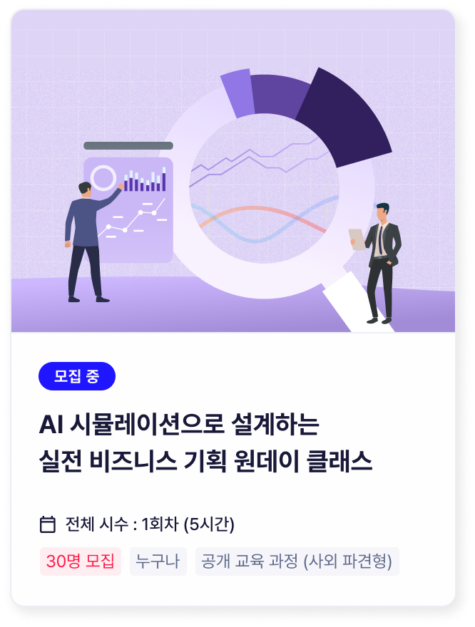 딱 하루만 투자해도, 현업이 마주한 문제를 AI를 활용해 해결할 수 있습니다.