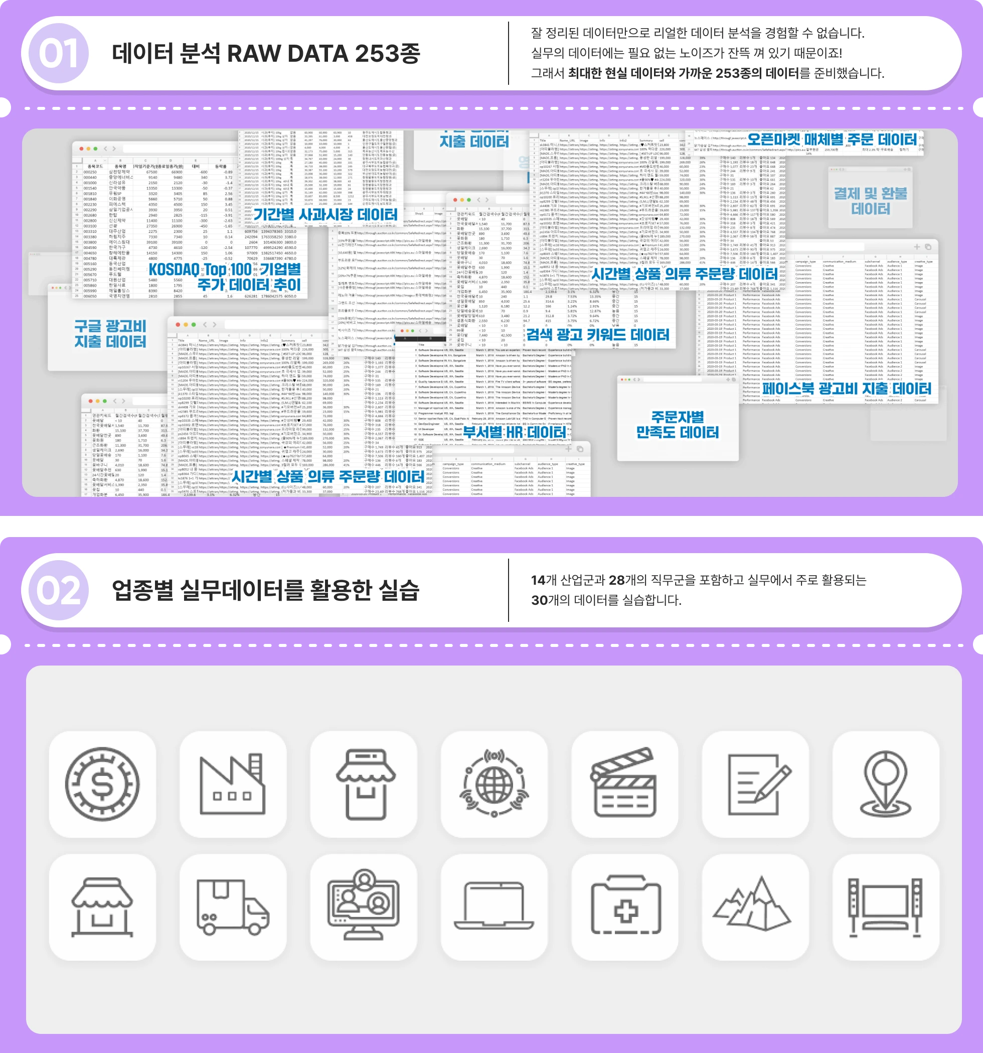실무에서 발생하는 리얼 데이터와 업종별 실습으로