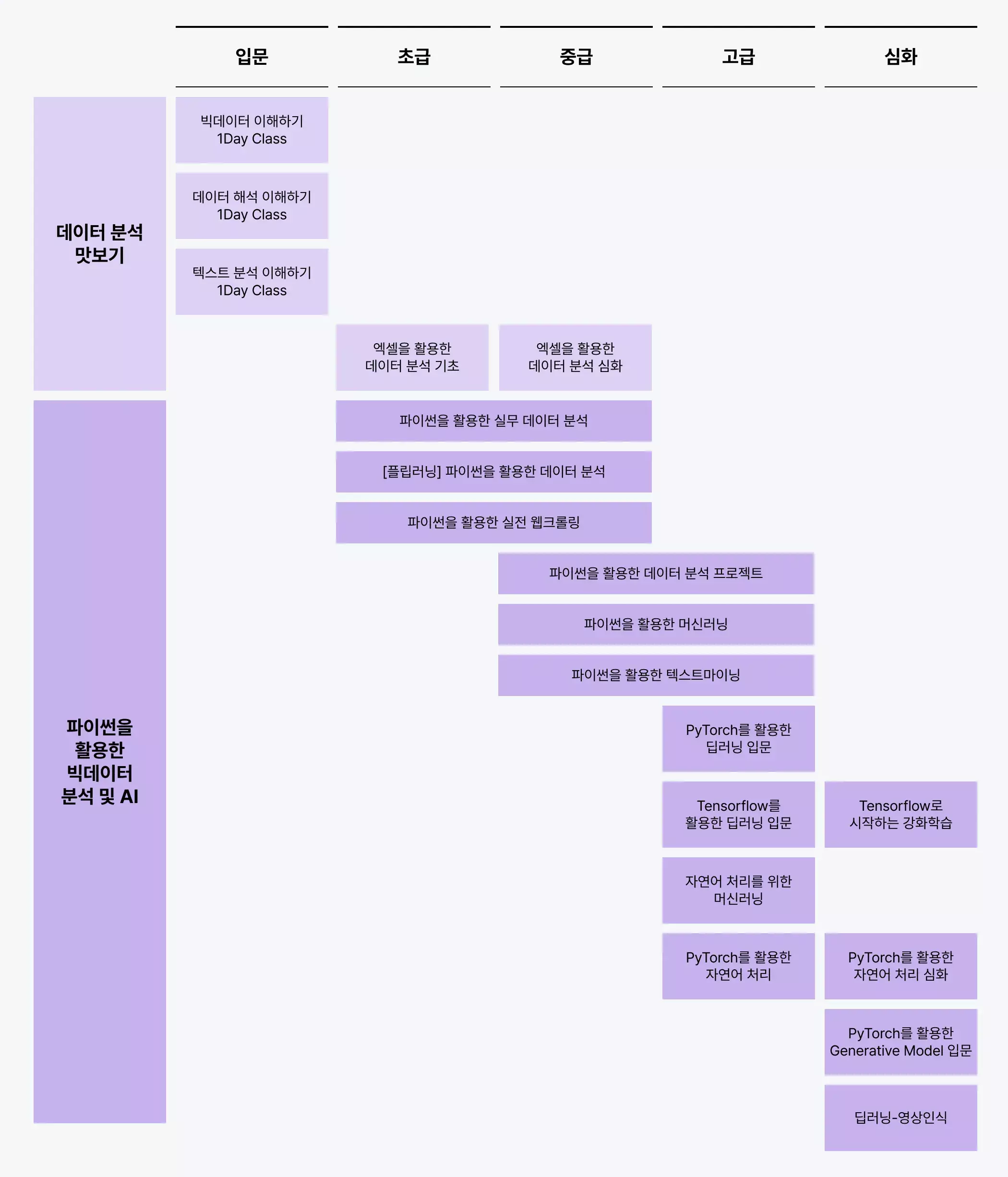 원하는 레벨의 AI 데이터 분석, 빅데이터 교육으로