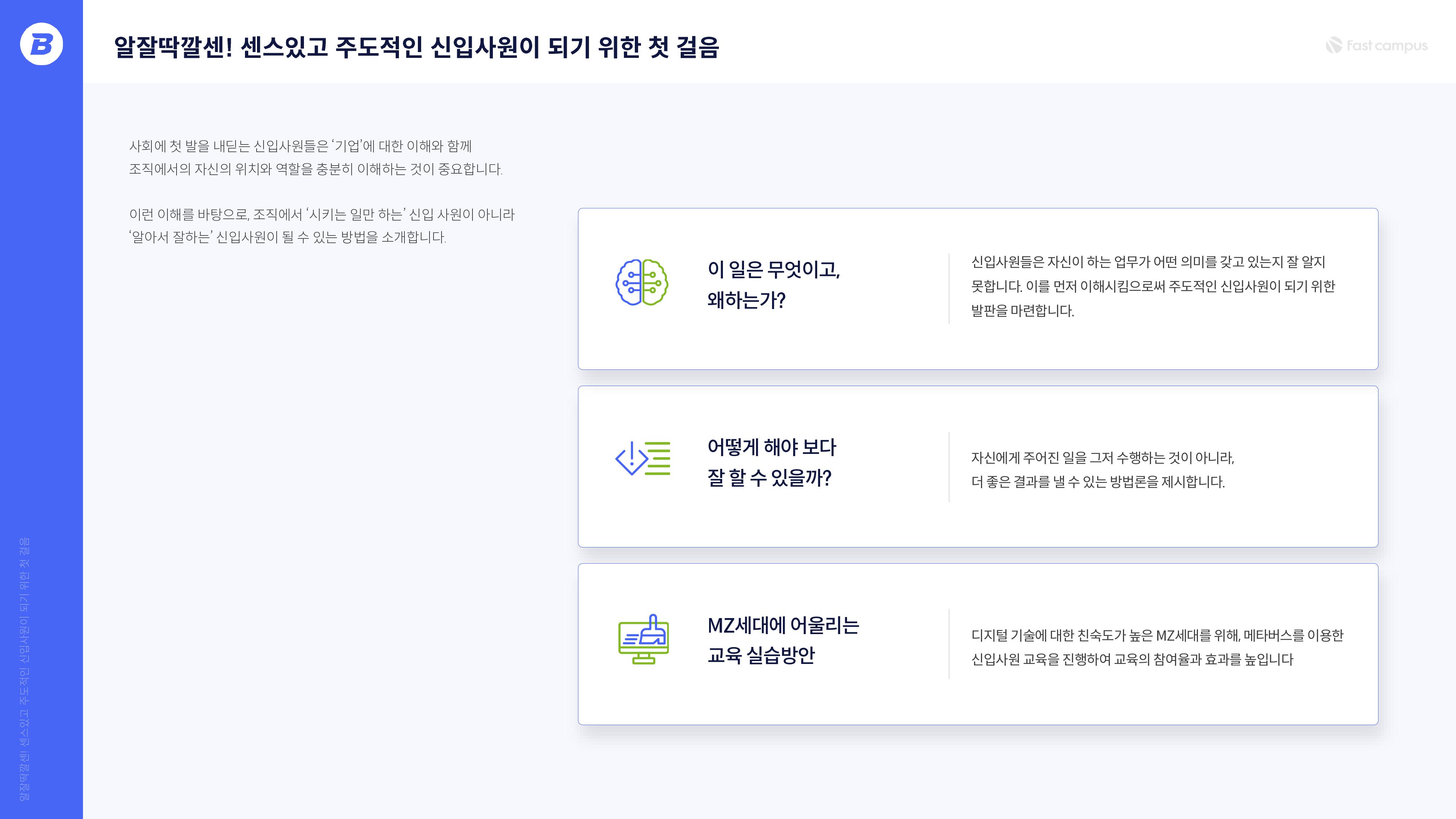 업계별 타사에서 가장 자주 문의하는 교육 프로그램을 제안서 형태로 확인해 보세요!