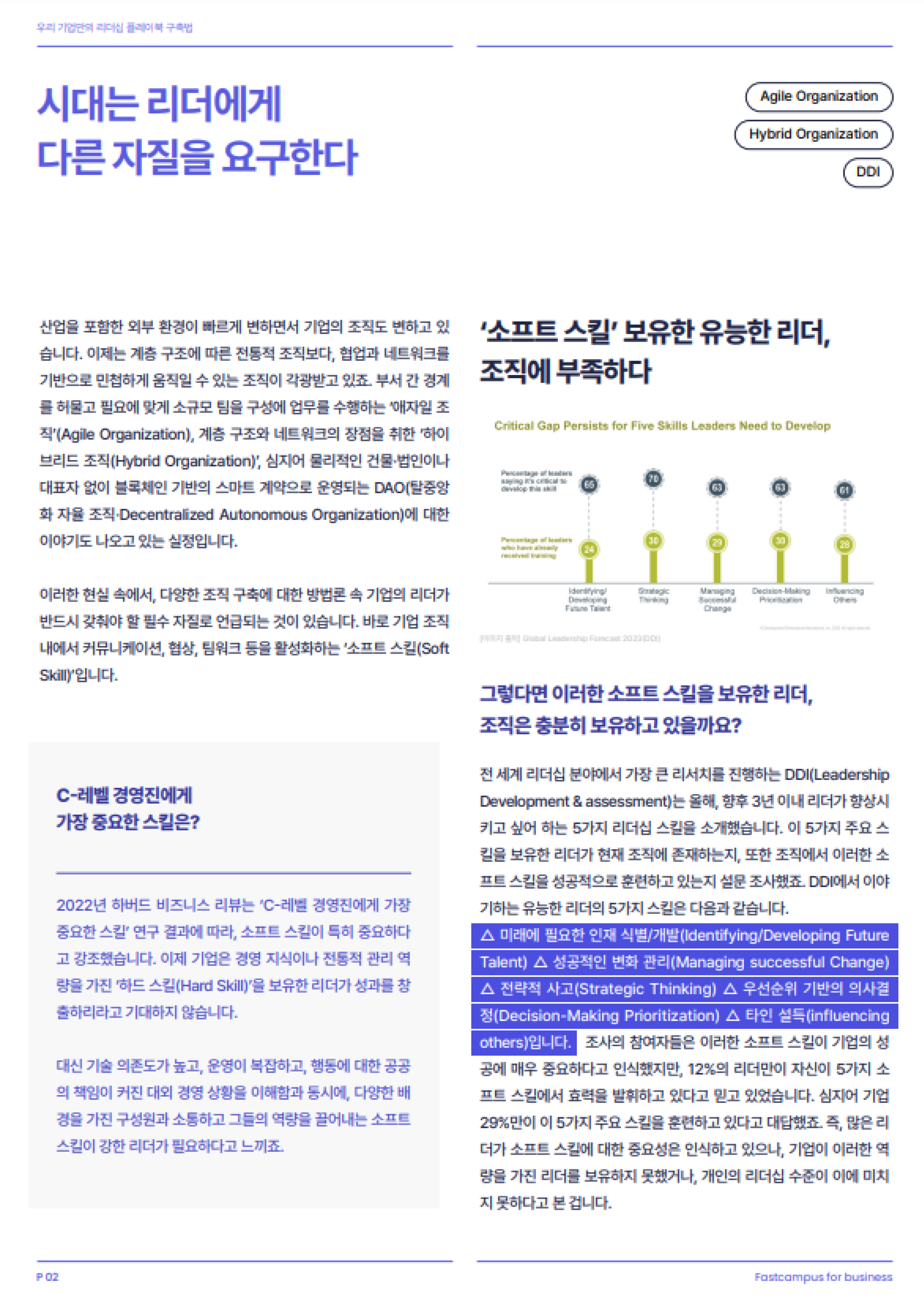 내/외부 퍼실리테이터 활용을 통한 지속가능한 리더십 양성 노하우, 리더십 플레이북 구축 가이드를 통해 만나보세요.