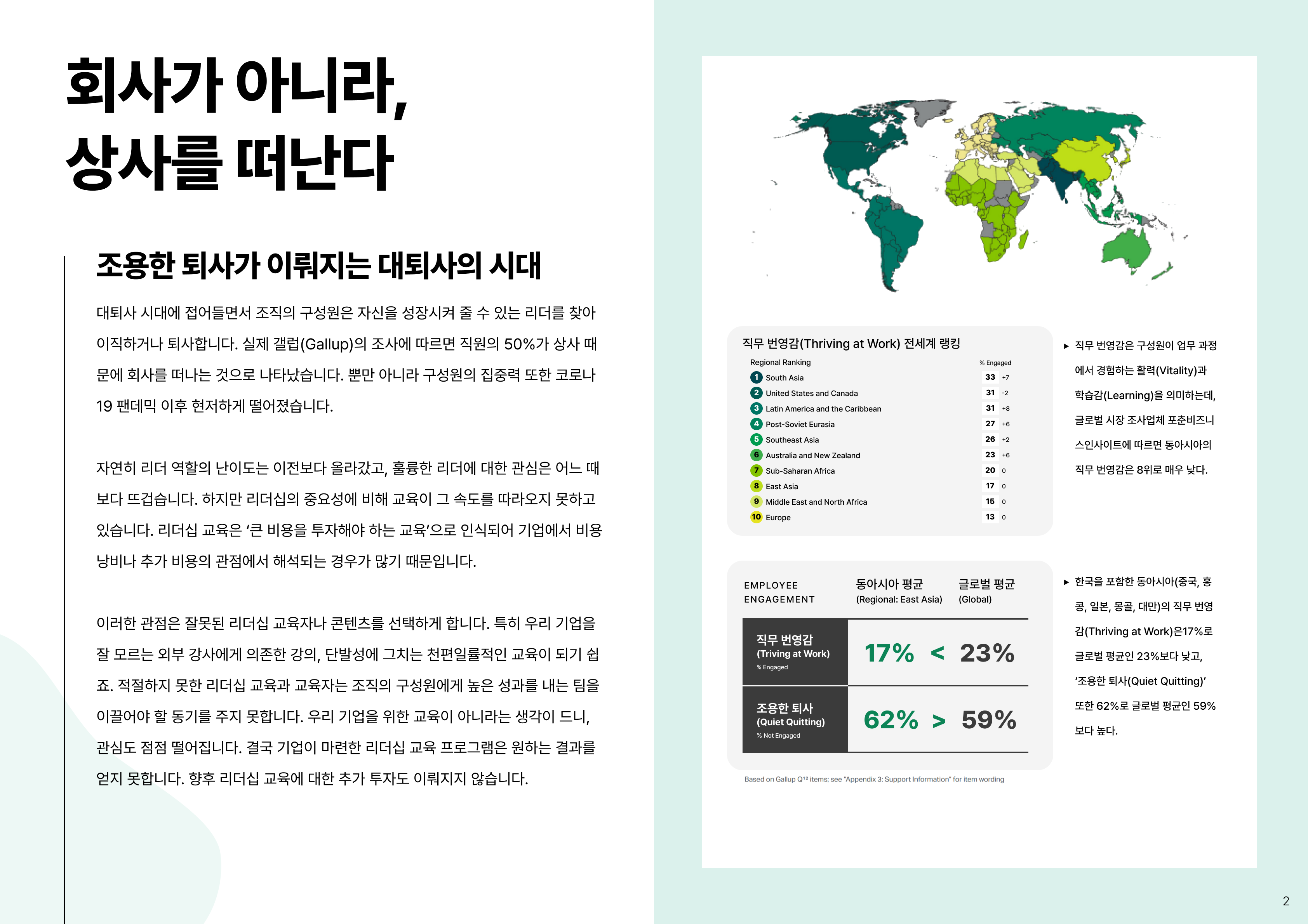 빠르게 변하는 시장에서 조직 성장을 위해 무엇보다 중요한 것은 우리 기업에 맞는 리더를 육성하는 일입니다.