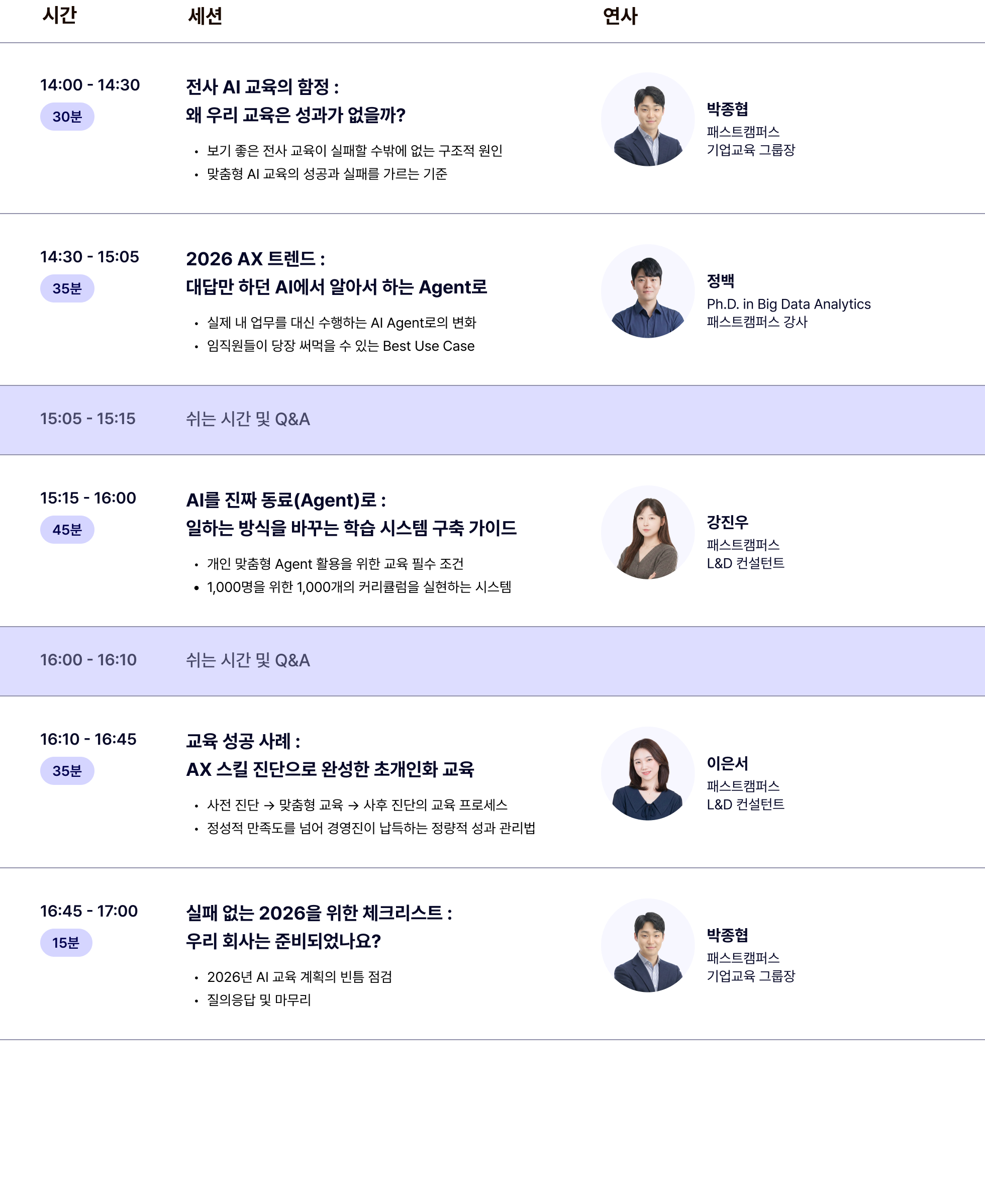문의 : 패스트캠퍼스 기업교육팀 / b2b@day1company.co.kr / 02-501-7429