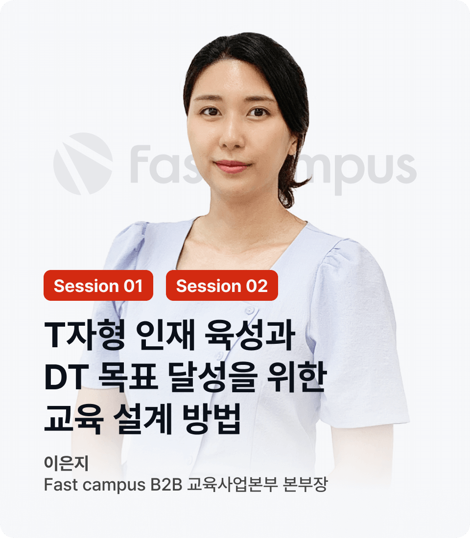 - 패스트캠퍼스가 제안하는 DX 교육 로드맵14:00 ~ 14:30Session 01.T자형으로 시작하는 디지털 인재 육성 방법