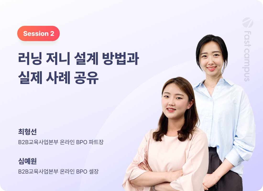 2) 실제 기업 적용 사례와 교육 후기14:30 ~ 15:10Session 02.러닝 저니 설계 방법과 실제 사례 공유