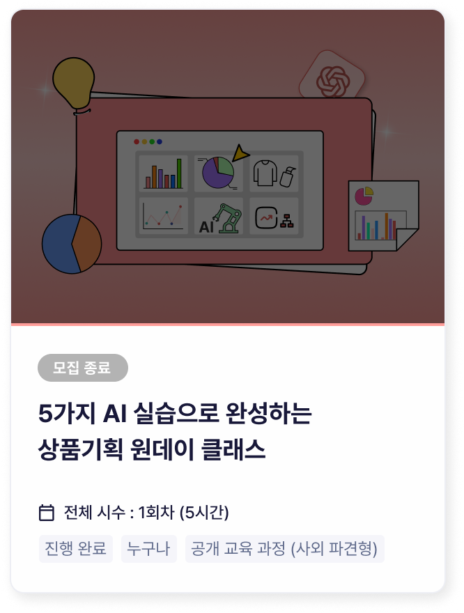 딱 하루만 투자해도, 현업이 마주한 문제를 AI를 활용해 해결할 수 있습니다.