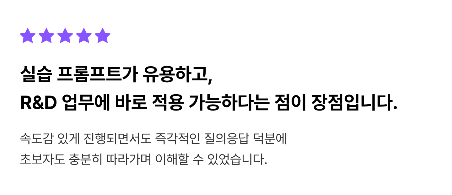 논문 요약부터 기술 조사, 실험 설계 자동화까지 R&D 실무에 바로 적용할 수 있는 생성형 AI 활용법을 하루 만에 익힙니다.