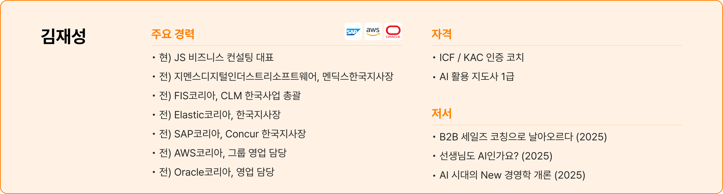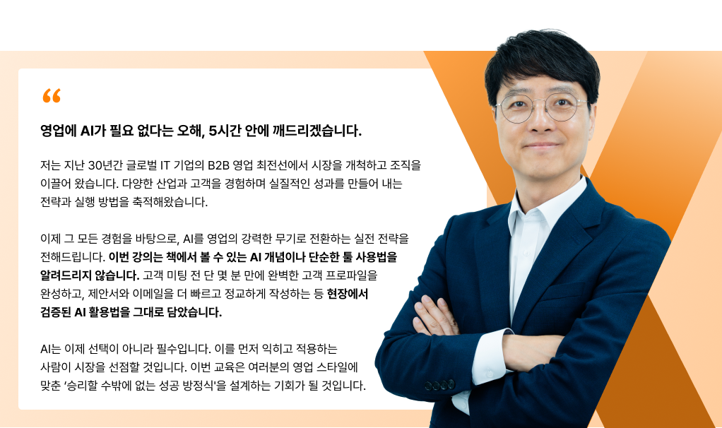 오랜 현장 경험으로 다져진 세일즈 감각을 AI와 결합해, 성과로 이어지는 실전 활용법을 제공합니다.