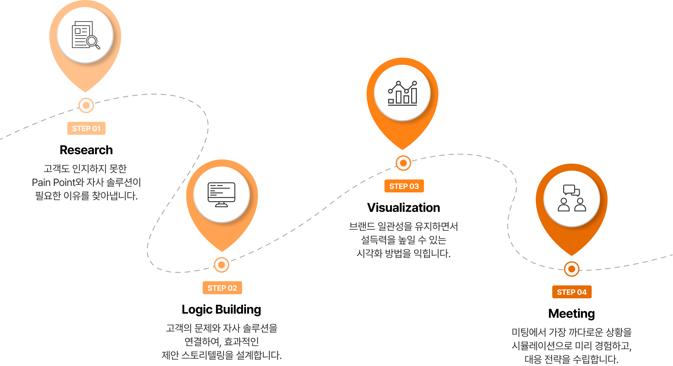 - 고객사 담당자의 개인 성향(인터뷰, SNS 등) 분석 및 아이스브레이킹 소재 발굴