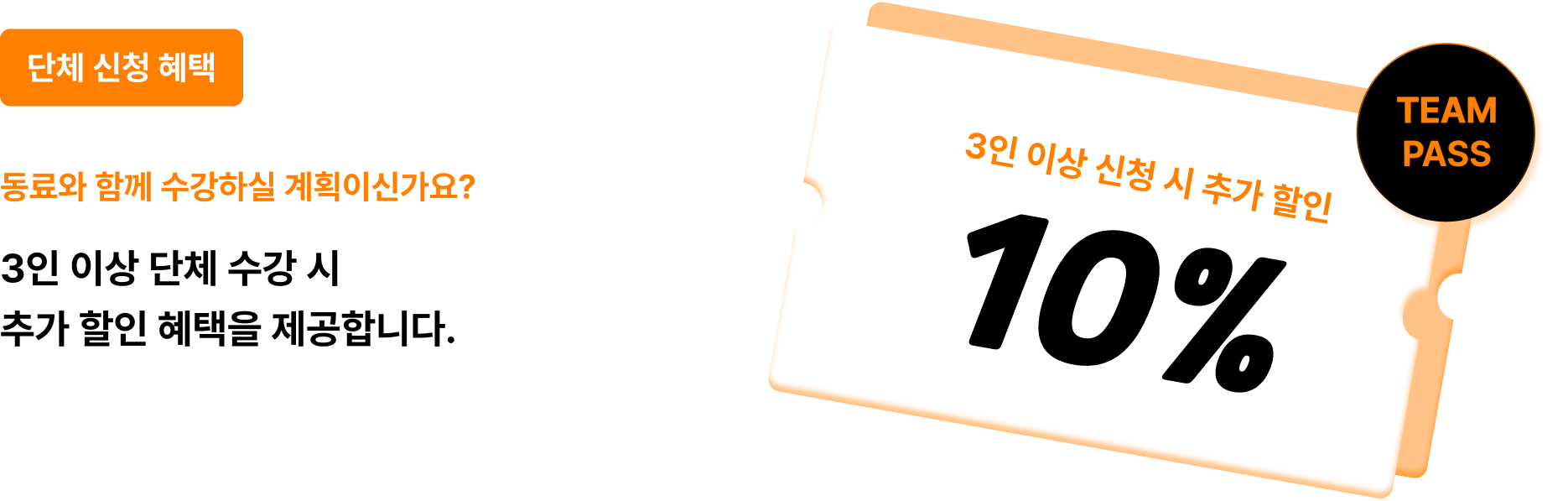 3명만 모이면 10% 추가 할인 받을 수 있는 Team Pass