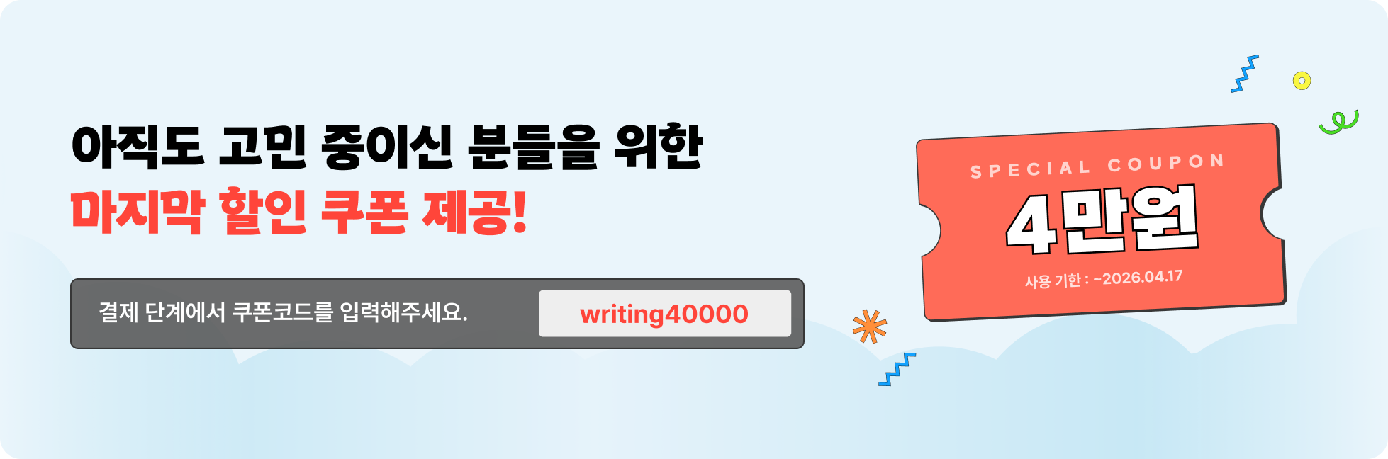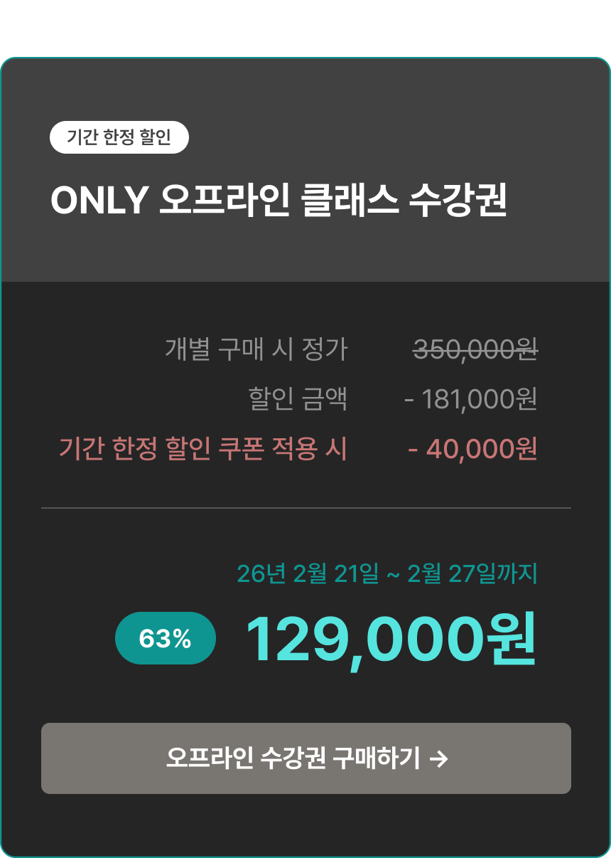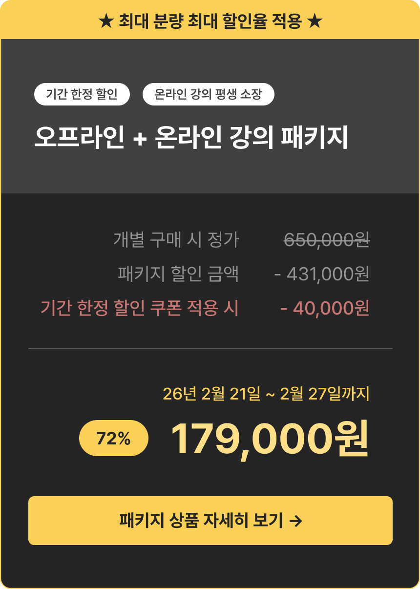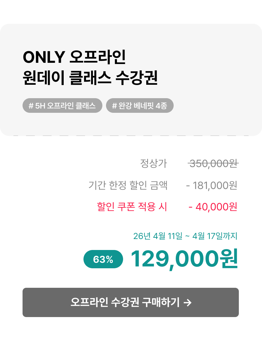 * 상황에 따라 사전 공지 없이 모집이 조기 마감되거나 할인이 연장될 수 있습니다.