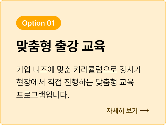 ※ Option 3. 공개형 교육만 선택하실 경우, 수강권 10개 이상 일괄 구매하는 기업 고객에게만 적용됩니다.