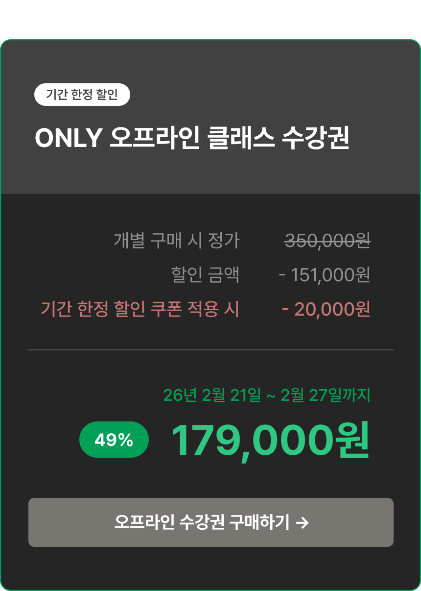 * 상황에 따라 사전 공지 없이 모집이 조기 마감되거나 할인이 연장될 수 있습니다.
