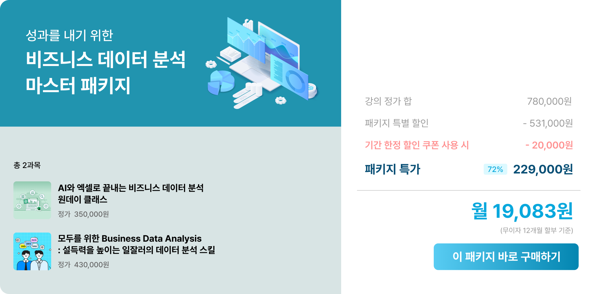 이제는 엑셀 활용을 넘어, 비즈니스 의사결정의 속도와 정확도를 높여주는 AI 활용 역량이 필요합니다.