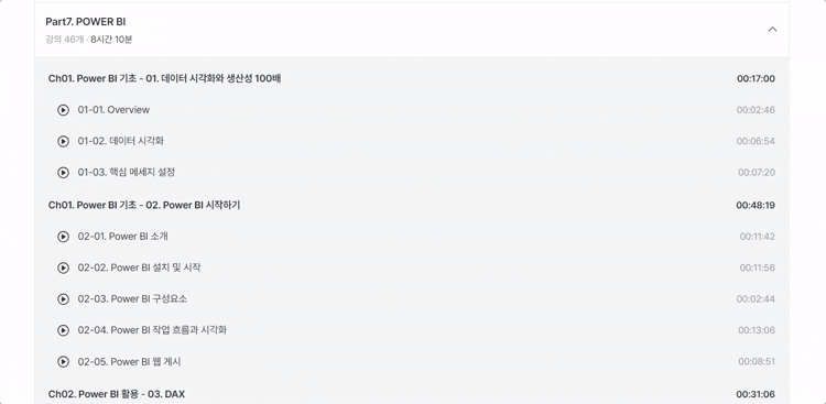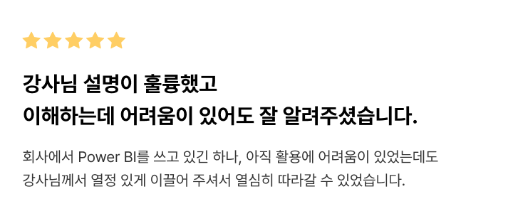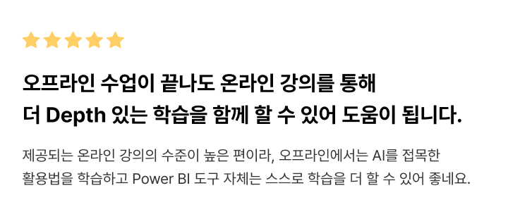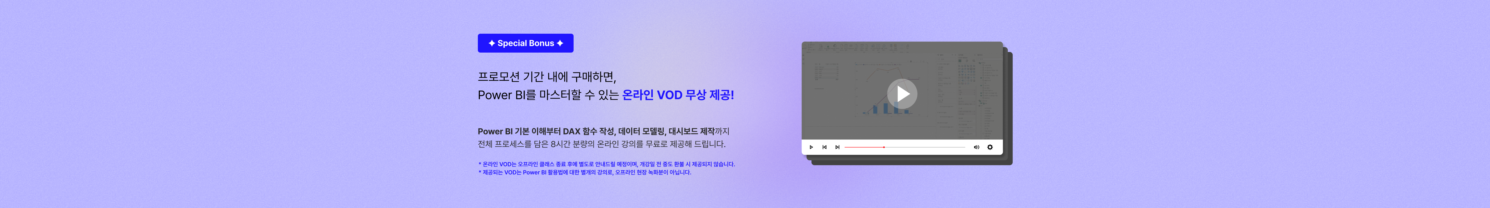 ※ 해당 VOD는 Power BI 활용법 학습을 다룬 별도의 강의로, 오프라인 현장 녹화본이 아닙니다. 오프라인 강의 결제 시에만 제공되며, 별도 판매되지 않습니다.
