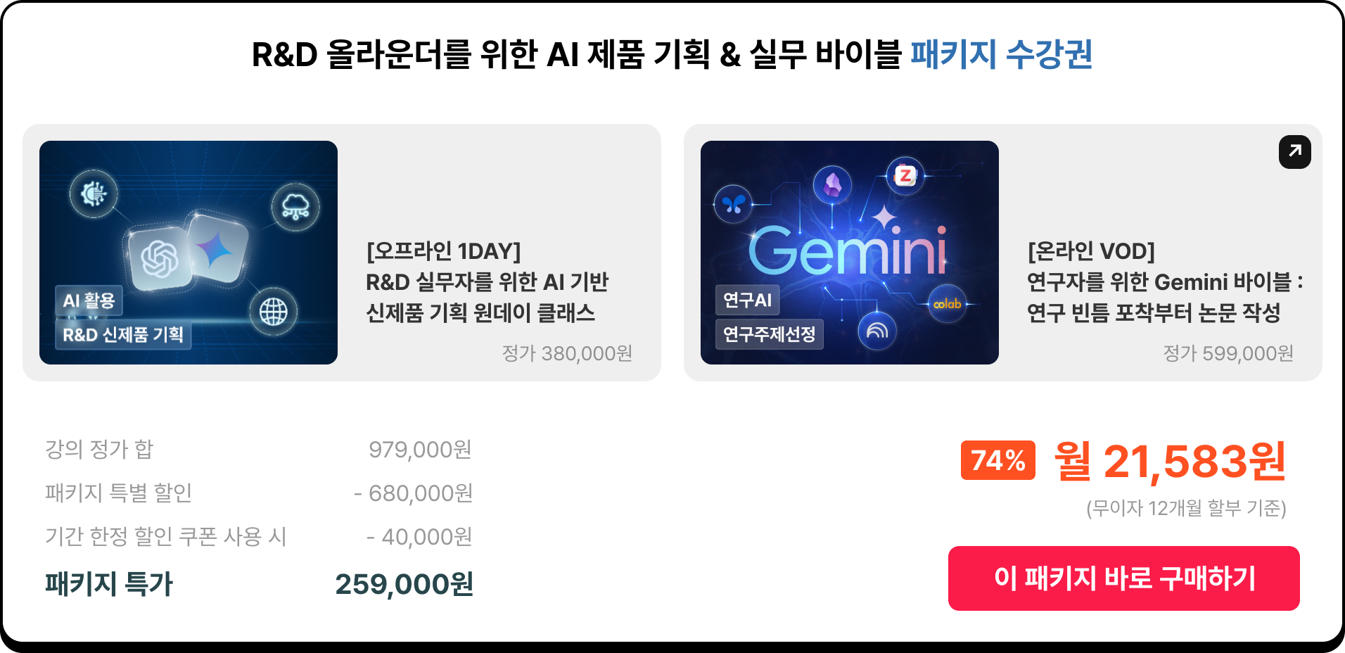 * 상황에 따라 사전 공지 없이 모집이 조기 마감되거나 할인이 연장될 수 있습니다.